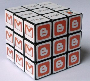 Dule se je vrnil in nam prinesel mala darila. Med drugim tudi tole Google Rubikovo kocko, ki me je okupirala za celo soboto. Uspešno sem sestavila dva segmenta (torej osnovno ploskev + dve vrstici mejnih ploskev). Potem pa cel dan vrtela, zadnjo ploskev, prišla celo tako daleč, da so mi manjkale samo tri ali štiri in potem vse zamešala. Na internetu sem našla navodila. Vendar sem jih prepovršno prebrala, kar me je stalo kako uro vrtenja brez konca. Pogledala sem le slike in vrtela po slikah. Dule je seveda prebral navodila in me rešil!