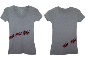 Ja proces sitotiska je dolgotrajen, zamuden, vendar zabaven. Potrebuješ: sito, temnico, fotoemulzijo, ne vem več koliko močne žarnice in potem še prostor kjer tiskaš, pa barvila in seveda dobro idejo (ta je ključna). Torej, na faxu smo vse to imeli, doma pa tega ni. Ko sem hotela naredit kak T-shirt za darilo ali kaj podobnega, sem se posluževala transfernih folij. Vendar so le te uporabne samo na belih majicah. Tako sem nazadnje izdelal tudi tele Charlie in Lola majčke.