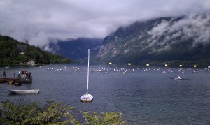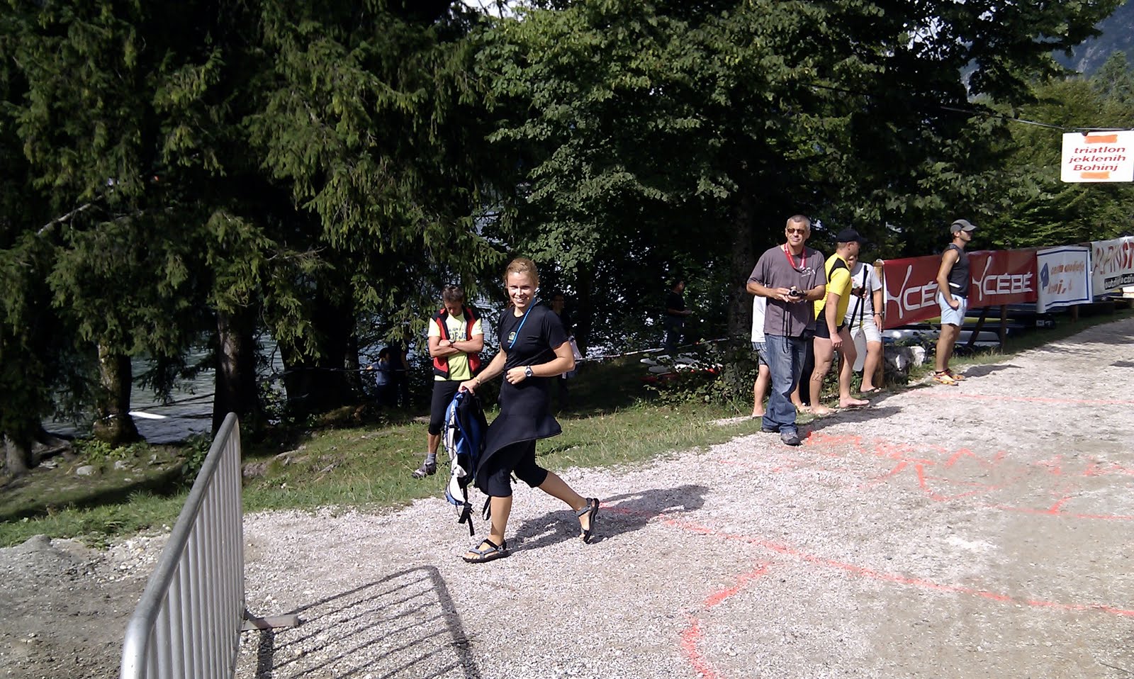 Pa smo v Bohinju. Malo rosi. Sledijo priprave: nalepke na čolne , listki na kolesa, priprava ruzakov za medpostaje… Živčna sem. Ja tok, kot še nikoli. V trenutku pomislim: Trojk nikoli več! Pritisk je večji. Pa čeprav sotekmovalki nista neki grebatorki. Kolega ponuja energetske ploščice. Izbere mi neko za eksplozivno moč:). Ja to bo to:). Kličem Manimejkerja, pravi da so pri Bledu. Ura je 9.10. Veliko jih je že v vodi. Naša tekačica je že odšla na Uskovnico z avtomobilom. Fanta sta že izginila. Najbrž sta že v čolnu. Naša kolesarka mi pomaga dati čoln v vodo. Opazim da so mi dali drug čoln. Čoln sem si namreč sposodila in moj je bil označen z številko 4., ta pa je bil enak le 5.je imel gor. Ja sedež je bolj nazaj. Ključa ni. Prestavim noge in se odpravim proti štartu. Ufff, večina je že pripravljena. Poskušam se prebiti za črto in v ozadje. Obrnem čoln v pravo smer in POK!