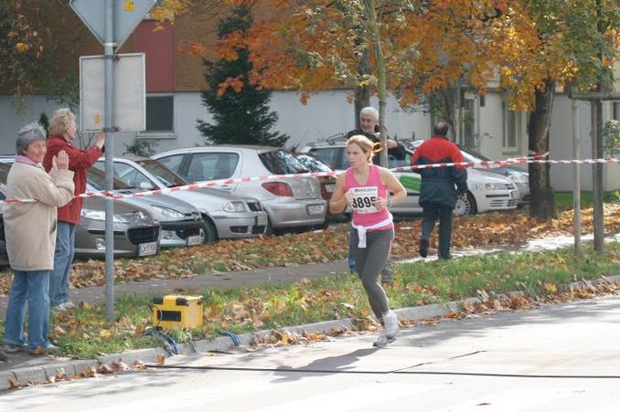 Nečakinja priteče za menoj in sprašuje po Manimejkerju, ki pa je sigurno že kak kilometer pred menoj. Dunajska ravnina je zame grozna. Poznam vsak njen kotiček. Miljonkrat sem jo prekolesarila, malo manjkrat pretekla in kar nekajkrat prehodila. Vleče se! Noge postajajo trde. Valjda, morala bi biti že na cilju jaz se pa še majem po Dunajski. Ogovori me dekle, ki sva se spoznali prejšnji vikend v mestu. Poznam namreč njenega moža. Pravi, da ima hudo krizo, da se ji vleče od 7 km. Skupaj malo pokramljava o tekaških izkušnjah in metri hitreje tečejo. Tik pred koncem se hoče zaustavi, pa ji ne dovolim: “Hitreje bo konec, če tečeva.”. V cilj prideva skupaj. Ena drugi sva hvaležni za vzpodbudo na zadnjih kilometrih.