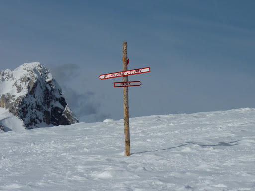 Tu sem bila že kar precej utrujena, vendar nebo se je kar odprlo. Sonce, sneg in gore naredijo svoje. Odločile smo se, da nadaljujemo brez počitka. Jeklenki sta pridno čebljali in moj zaostanek se je vedno bolj povečeval. Seveda sta me vedno čakali, vendar vedno dlje.