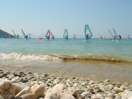 Torej domača plaža je bila mivkasta in plitvina se je vlekla v nedogled. Veter je zjutraj pihal nalašč za surfarske začetnike, popoldne pa se je razpihal in naredil neke vrst avtocesto za izkušene. Na plaži so izposojali surfe, katamarane, kajake (tiste sit-on-top in tudi boljše Seakayake), optimiste in pedolinote. Praktično ni da ni.