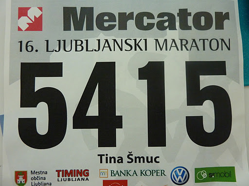 S tole fotko sem že dva dni težila na FB. Jaz sem bila fascinirana, da je sprintano ime na številki. Poleg tega pa sem res komaj čakala, da nabrušene tačke (tole sem ukradla eni komentatorki;)) preizkusim na progi. Spala sem super in na startu sem bila res zelo malo nervozna, kljub temu sem skočila še na stranišče (opa, to pride kasneje kot pomemben podatek). Mene pač vedno tišči lulat!