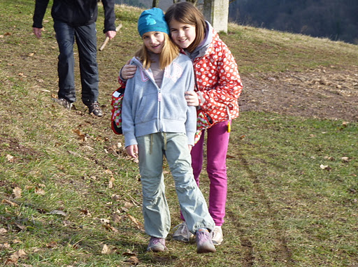 Starejši dve sta tako močno opletali z jezički, da sta na noge dostikrat pozabili, ampak sta kljub temu, veselo prisopihali na vrh.