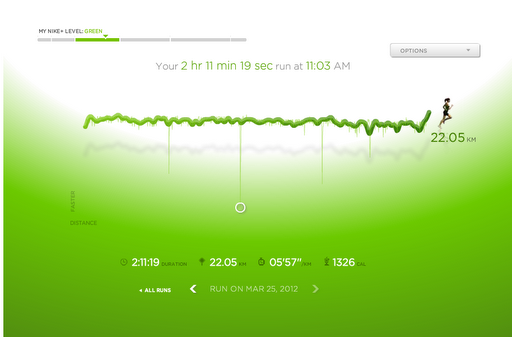 Na drugi postaji sem si iztisnila ogabno topel gel, ker sem ga ves čas valjala po rokah, in zopet spila kozarec vode. Več je ni bilo:(. Pa dalje. Tako do enega 10 km je kar šlo, potem so mi pa noge začele nagajat. Pri 16 km niso sam nagajale, ampak štrajkale. Navadno sem izčrpana, tokrat pa je bilo drugače. Res, da mi je bilo čisto prevroče, ampak glavno krivdo pripisujem neulaufanim nogam. No, to, da so kilometri postali dolgi 3 km, bom preskočila in napisala raje, da so se organizatorji zelo potrudili z motivacijskimi napisi. Meni so koristili in mi risali nasmehe na obraz. Proti koncu sem se borila sama s seboj, da nisem začela hodit. Tisti ki so, so bili hitrejši od mene :). V cilj sem prišla z časom 02:11.19. Nima pojma, kako mi to uspe. Na uro sem gledala, le tam do 10 km, kasneje sem imela preveč dela z vzpodbujanjem same sebe, kot paziti na tempo, ki ga tako ali tako nisem zmogla več držat.