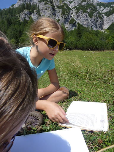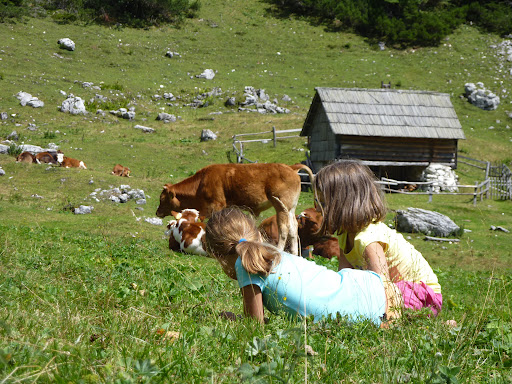 Takole smo pa poležavale na travi in čakale na jeklene tekače, da se vrnejo iz Vodnikove koče. Telim kravam ni hudega, ko pa te začno prav butasto gledat pa proti tebi rinit, pa tudi ni najbolj prijetno. Na koncu smo odšle še na plažo, kjer so se Lumpe ob družbi še skopale, pod Skalco na podelitev in domov.