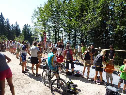 Na menjavi je bila cela zmeda. Ruzake so premetavali sem ter tja. Me smo našle svoje dva, jih pripravile in čakale. Tudi ostale ruzake so uspeli za silo urediti po številkah. Najbolj tečna situacija so tisti nervozni triatlonci, ki največkrat pomočnico še naderejo, ker jih ne pokliče dovolj glasno ali pa kaj podobnega. Medtem, ko so nekateri povsem mirni, se v miru preobuvajo in si nabirajo nove energije, medtem ko jih domači priganjajo :). Nekemu triatloncu smo vsi iskali vrečko (ruzak), ki je nekje izginila. Žena nekega drugega tekmovalca mu je ponudila svoje superge in ta jih je sprejel in v njeni odtekel še na kočo.