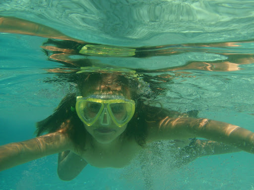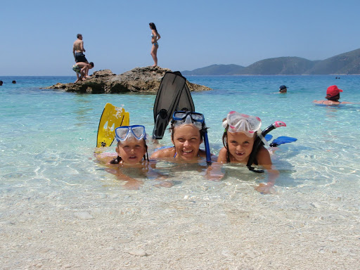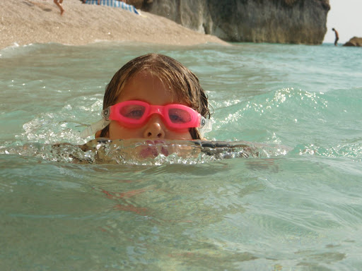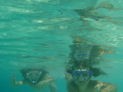 Na Z strani otoka so plaže z drobnim belim peskom in belimi kamenčki. Manjši minus je, da se je navadno treba spustiti po številnih stopnicah in nazaj grede seveda vzpeti. Tudi 370 stopnic smo našteli :). So pa plaže sanjske. Na nekatere vozi ladjica. Tako na kako uro strese sveže kopalce in pobere že pečene. Ena iz med takih je bila meni najljubša. Imela je celo skale primerne za plezanje in seveda za kasnejši skok ( res globoko dno). Tu smo se potapljali. Jaz najmanj, naša najmlajša, pa se je izkazala za pravo malo sireno. Mislim, da bo letos s plavalnim tečajem nadaljevala.