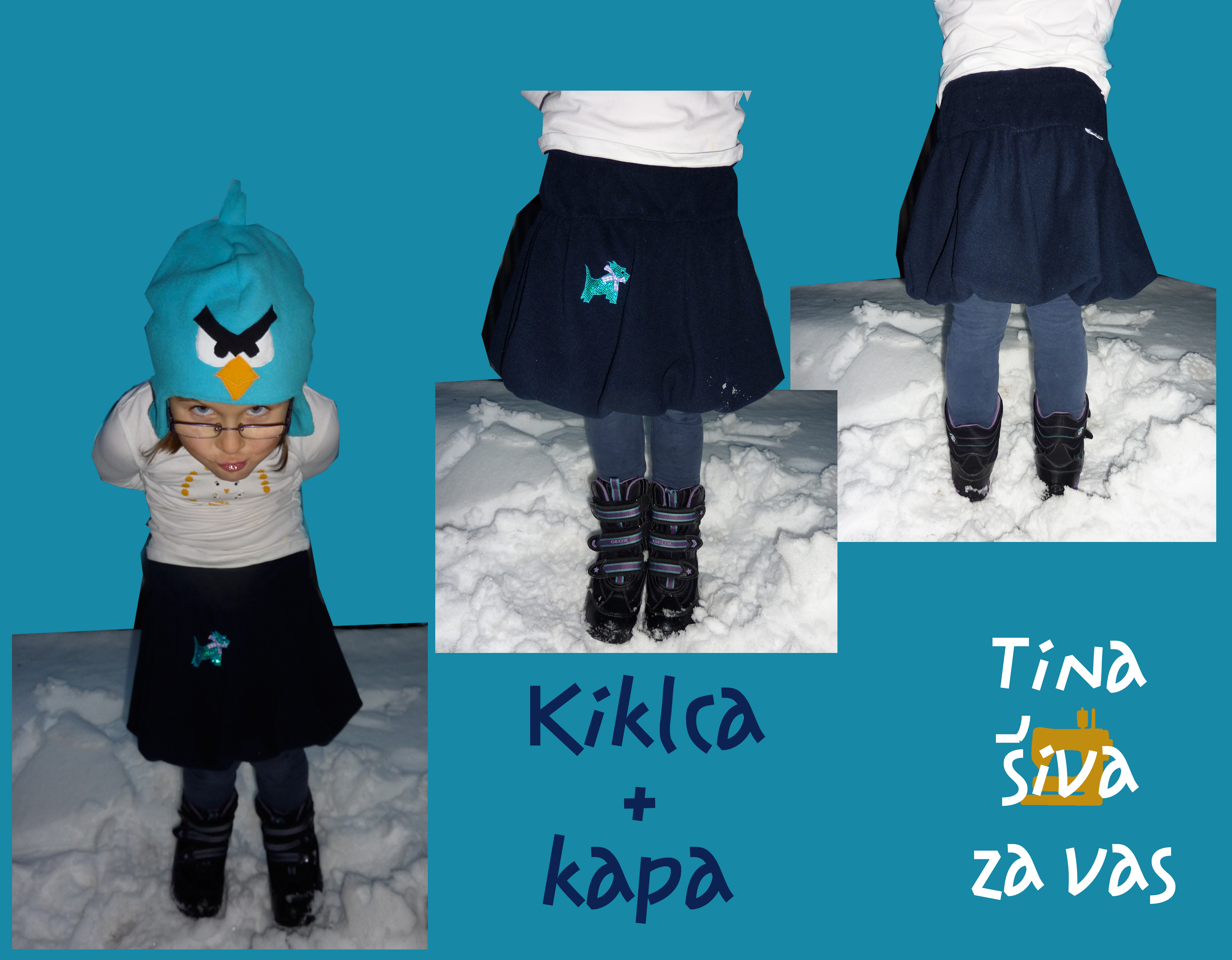 mama pa slika. Nastale so nove flis kapice (znotraj je še zmeraj bombaž). Za veliko taka s cofom. Za malo pa jezni ptiček, ki mora biti zadaj višja, da ji ne rine lase na vrat, ker potem jo pika, pri ušesih se spusti nižje čez ušesa, da ji pokrije. Dvomim, da si še kateri otroci toliko zmišljujejo pri oblačilih kot moji. A morda je to zato, ker se lahko in na koncu le pridemo skupaj!