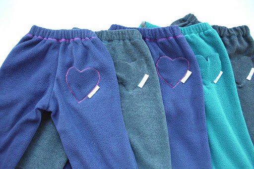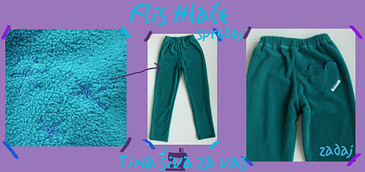 Glede na to, da zima zamuja, sem letos tudi pozna z šivanjem flis hlač za dekleta. Te namreč navlečejo čez pajkice ali žabe, na poti v šolo ali vrtec in jih puste v garderobi. Taka praktična stvar za zmrzljivke. Pa še v snegu se dobro obnesejo, ker se nenapijejo snega in niso mokre hlačnice (no za valat glih niso).